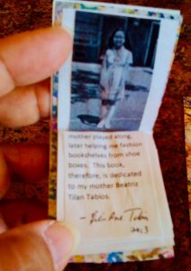 As I would say in an Author’s Note in the book, I dedicate the book to my mother, Beatriz Tilan Tabios, for all of her encouragement. I am also the type of writer that I became because of my mother.